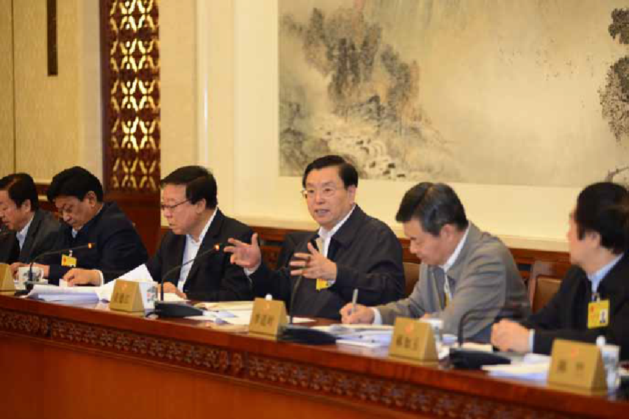 10月31日,十二届全国常委会第十七次会议举行分组会,审议种子法修订草案等。图为委员长加入分组审议。摄影/ 本刊记者马增科?。