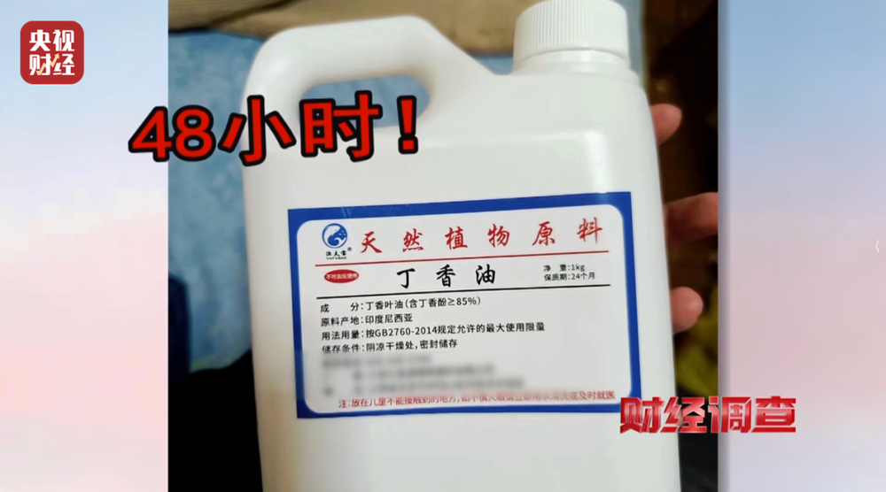 《财经查询拜访》记者找到江西吉安一家出产丁喷鼻酚的厂家,厂家认可原料从印尼进口,以食物添加剂表面出厂,被鱼估客用于麻醉活鱼。一些小做坊采办原料后包拆成“三无”麻药流入市场。厂家奉告记者,丁喷鼻酚正在鱼体内完全代谢至多需48小时。